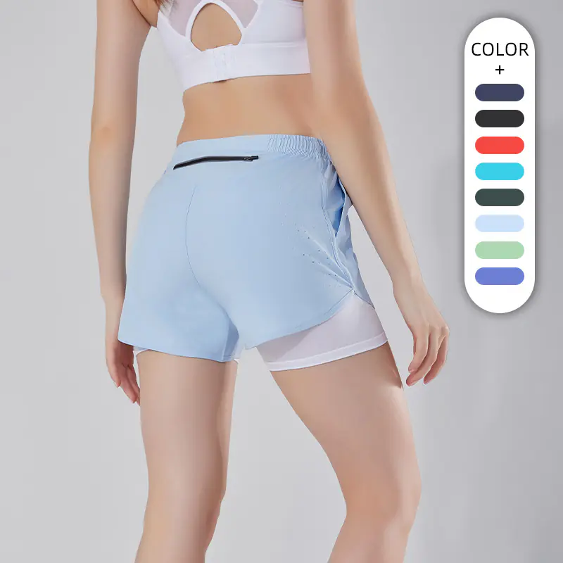 Summer Outdoor Marathon Running Fitness Shorts Women's Fake Two Pieces Three Points Yoga Pants Anti-Glare Sports ShortsSummer Outdoor Marathon Running Fitness Shorts Women’s Fake Two Pieces Three Points Yoga Pants Anti-Glare Sports Shorts